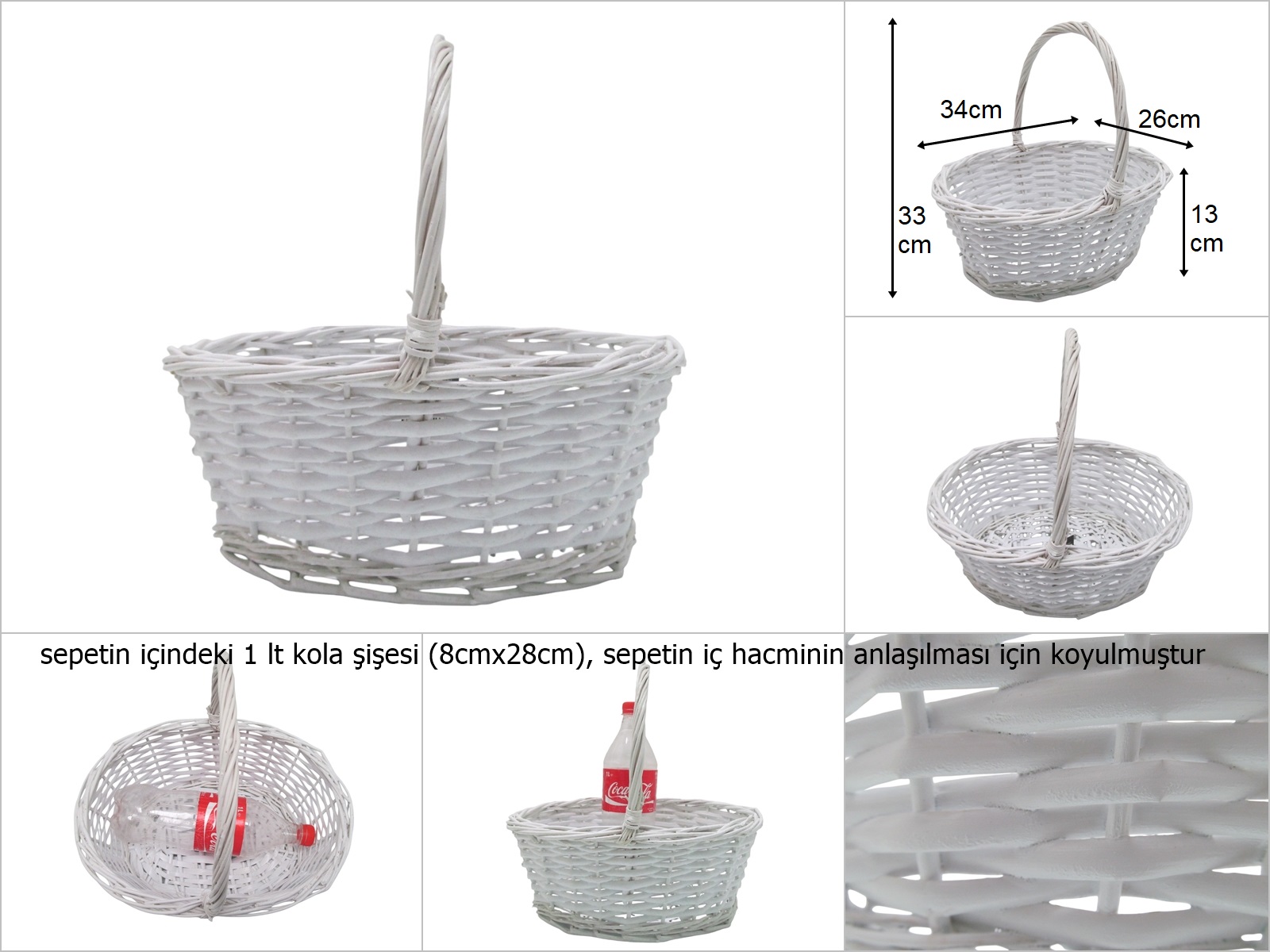 sd15845 üstten saplı beyaz boyalı no2 oval söğüt sepet