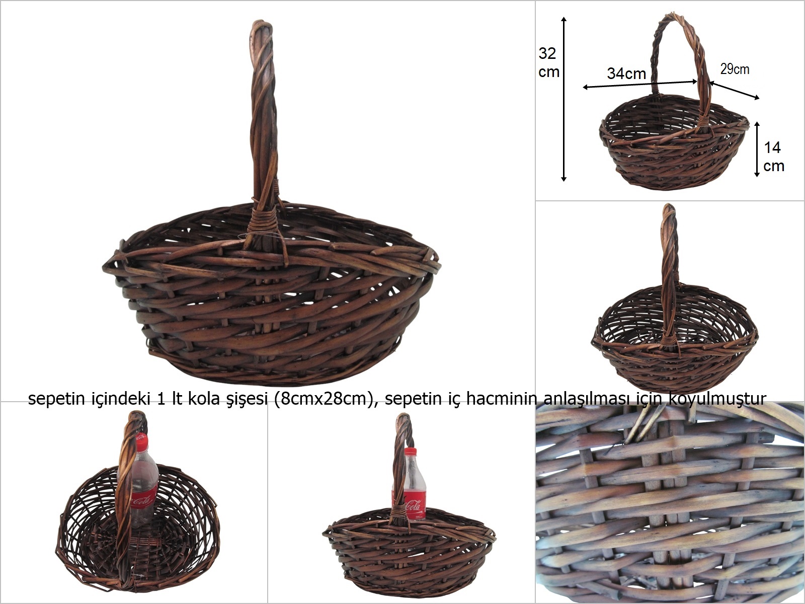 Tamamen el yapımı olan ürünümüz,söğüt ağacı dallarından üretilmiş olup,kahverengi boya ile boyanmıştır
