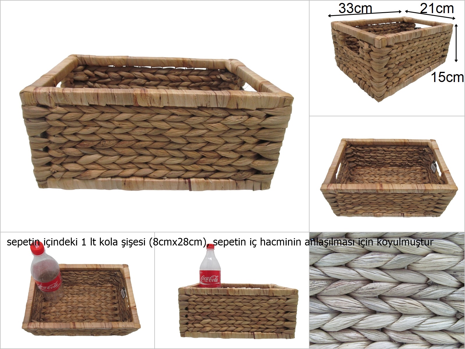 sd16029 ahşap kasa üzerine örülü no1 dikdörtgen hasır sepet