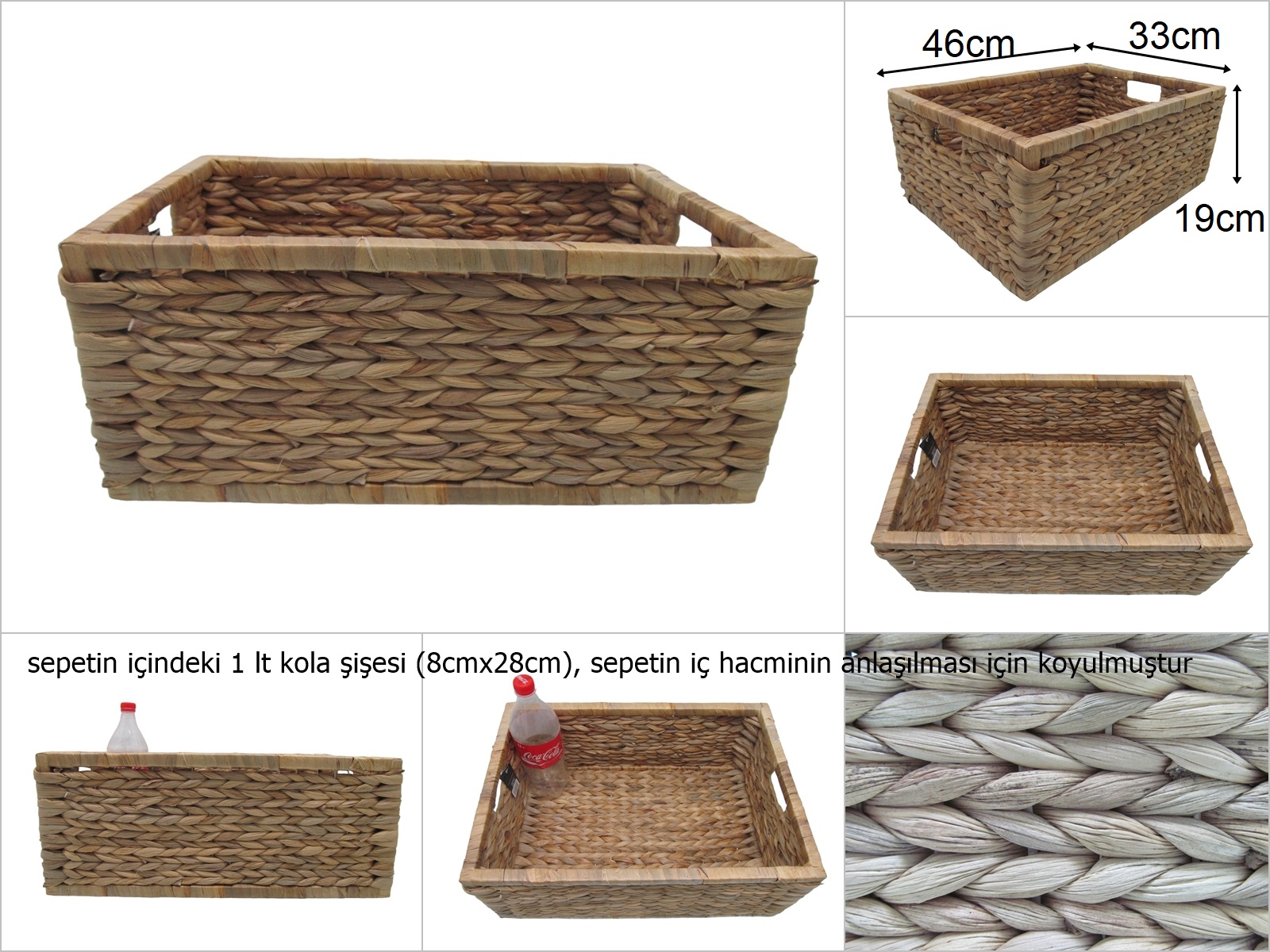 sd16031 ahşap kasa üzerine örülü no3 dikdörtgen hasır sepet
