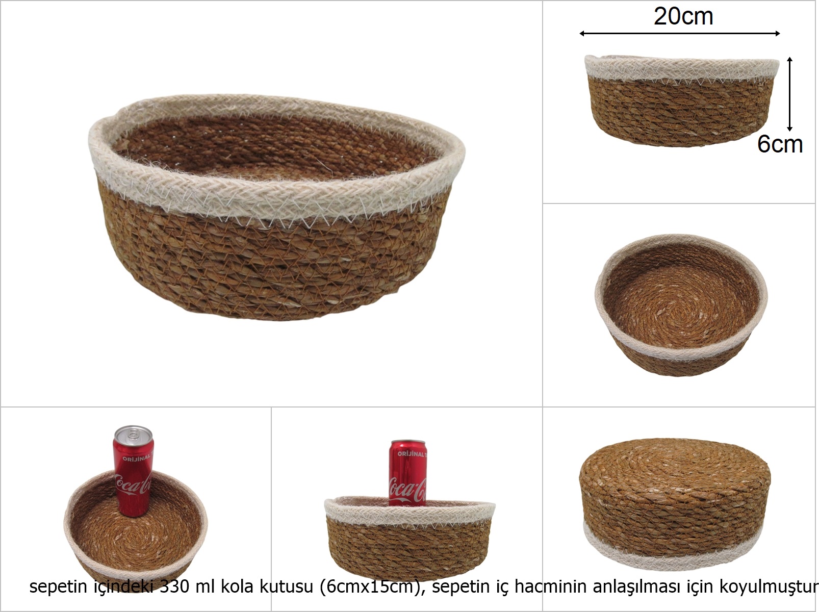 sd19676 hasır+tekstil örgülü no4 dekoratif yuvarlak sepet