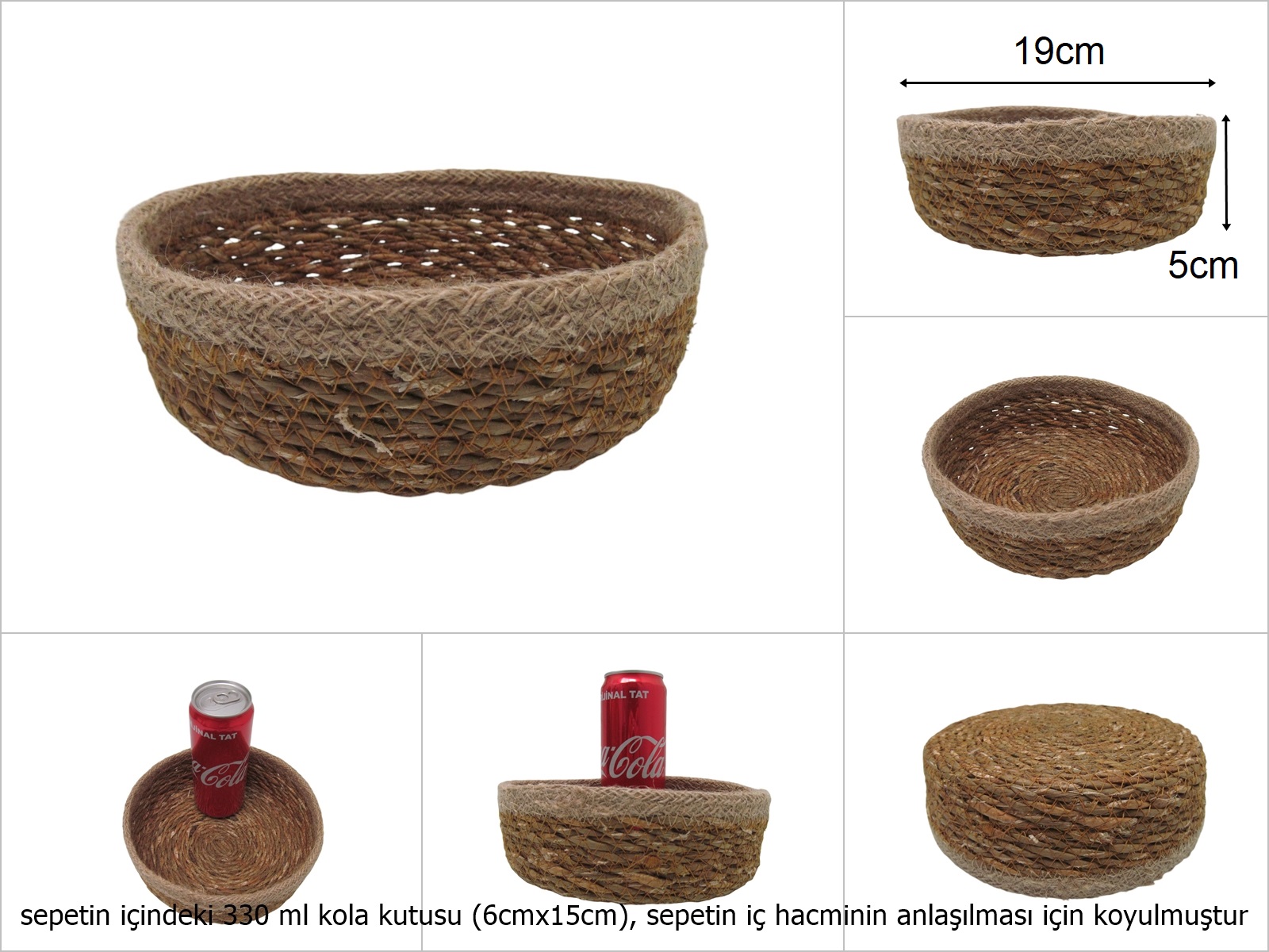 sd26341 hasır+tekstil örgülü no3 dekoratif yuvarlak sepet