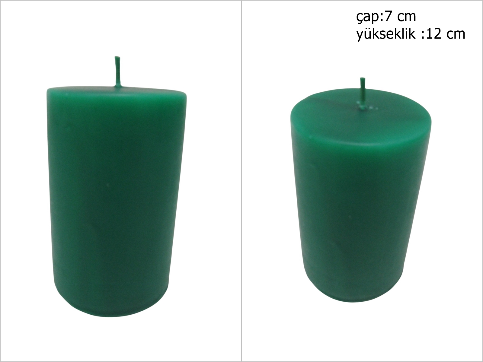 sd39854 dekoratif silindir yeşil mum 7cmx12cm