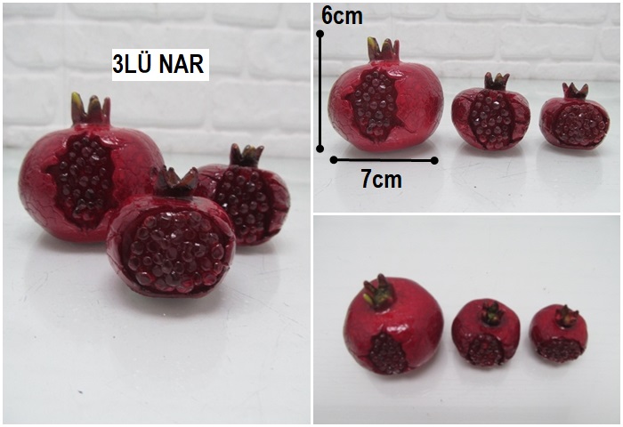 sd42836 dekoratif döküm polyester 3 lü set patlak nar obje