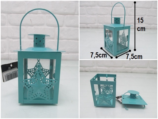 sd44264 mavi metal yıldız dekorlu camlı mumluk fener