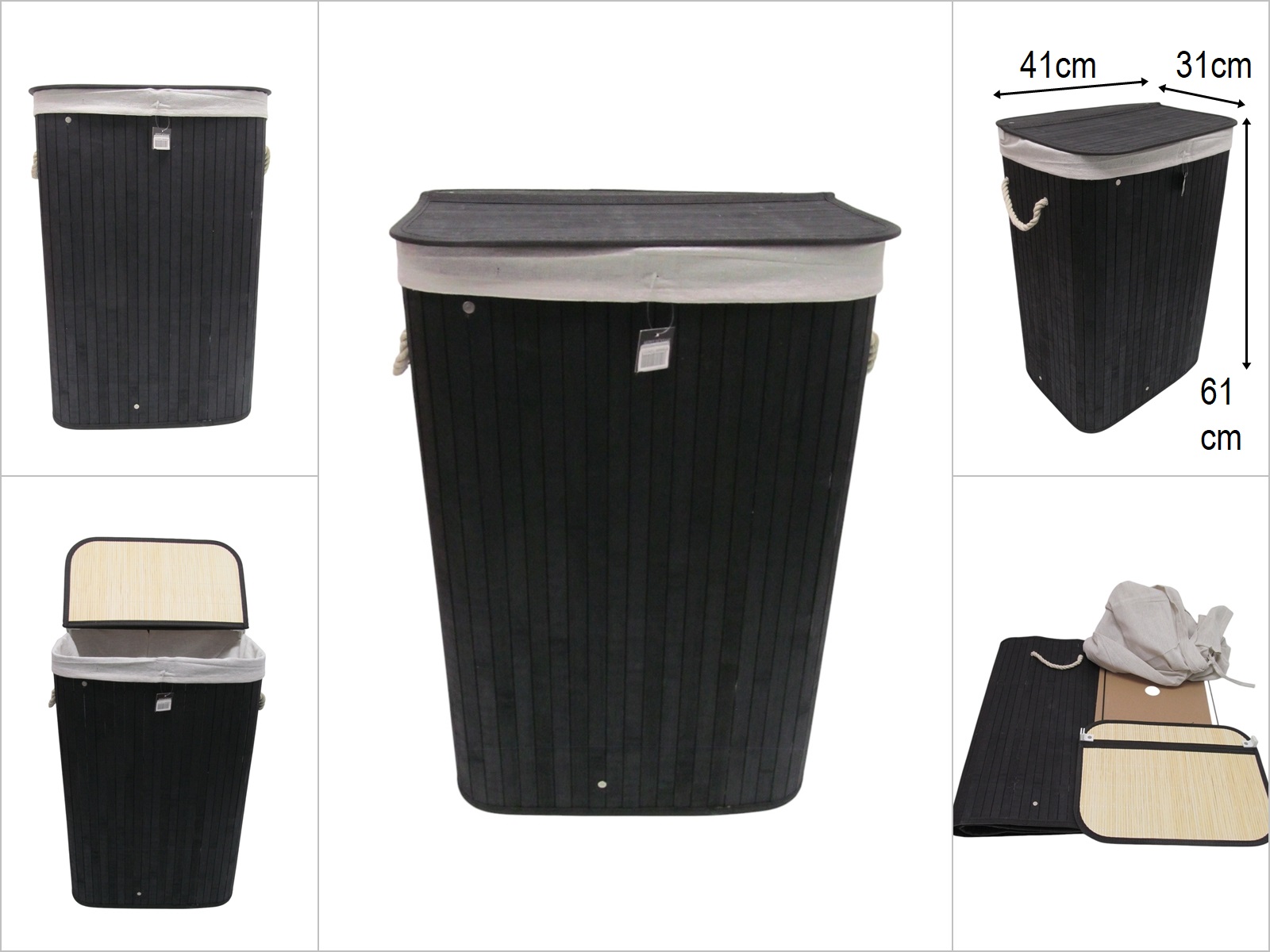 sd46615 katlanır portatif dikdörtgen siyah bambu kapaklı sepet