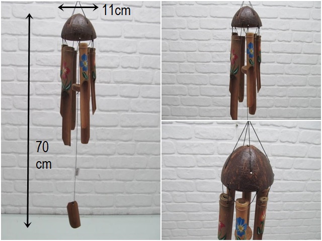 sd46735 hindistan cevizi çatılı desenli bambu rüzgar çanı