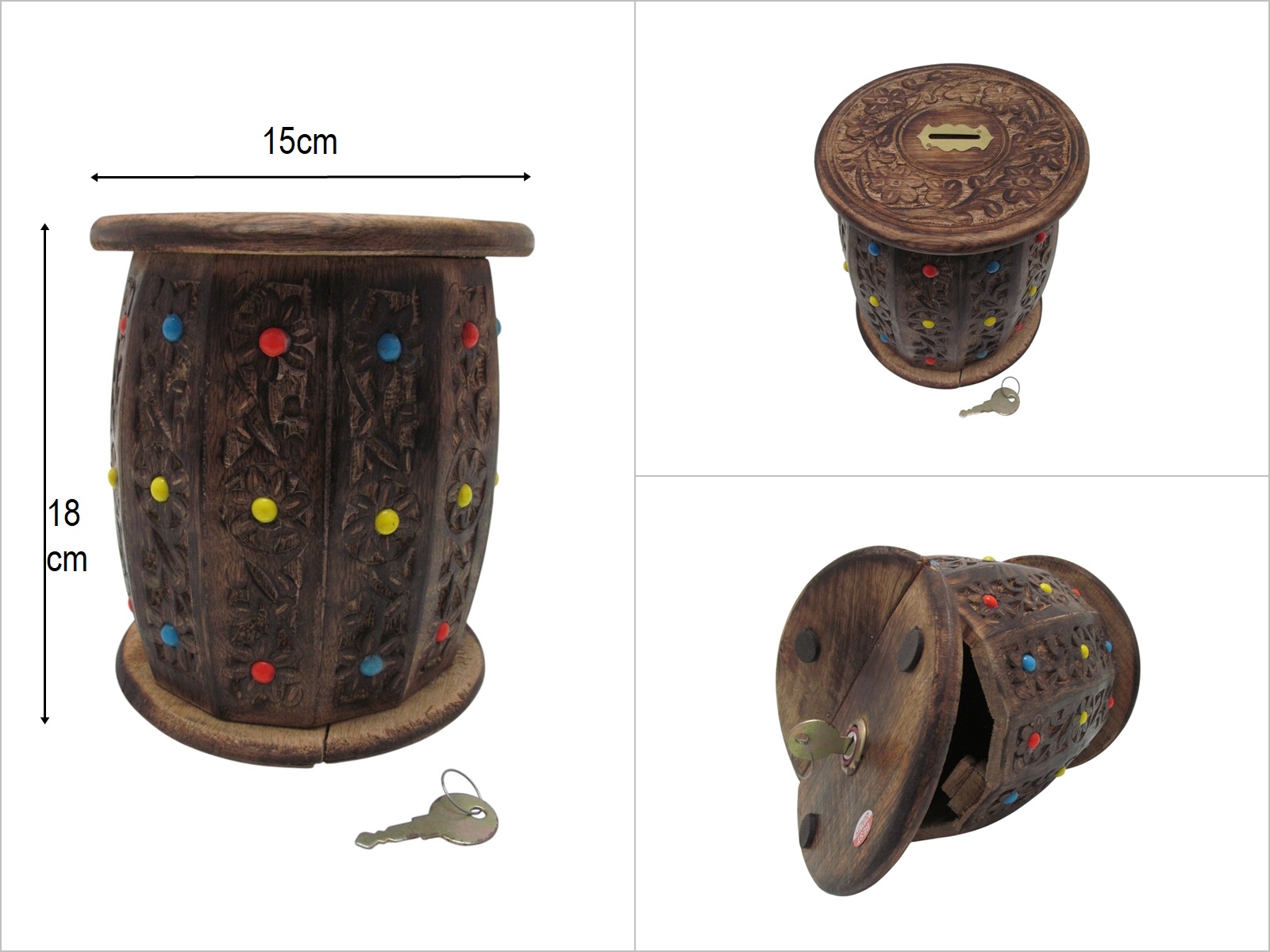sd48538 no:3 ahşap el boncuklu fıçı kumbara