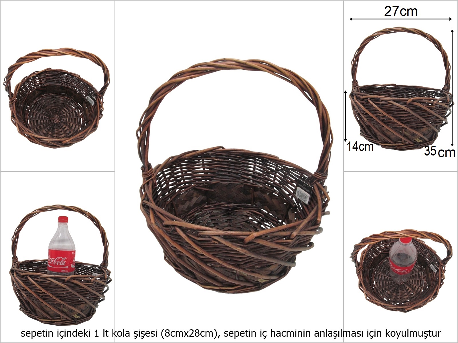 sd48680 üstten saplı dekorlu no1 yuvarlak söğüt sepet