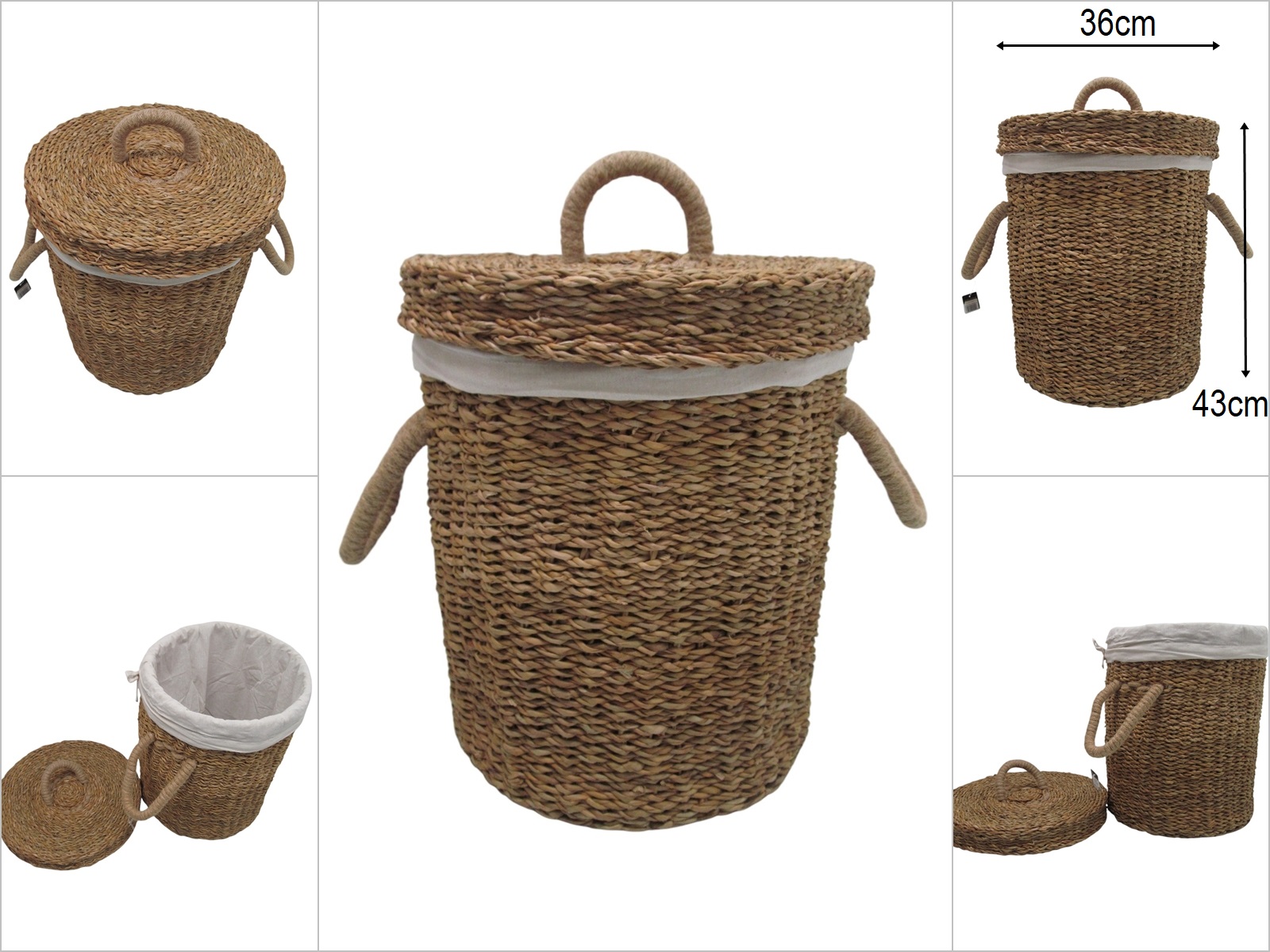 sd49828 dekoratif kapaklı no1 yuvarlak derin hasır sepet