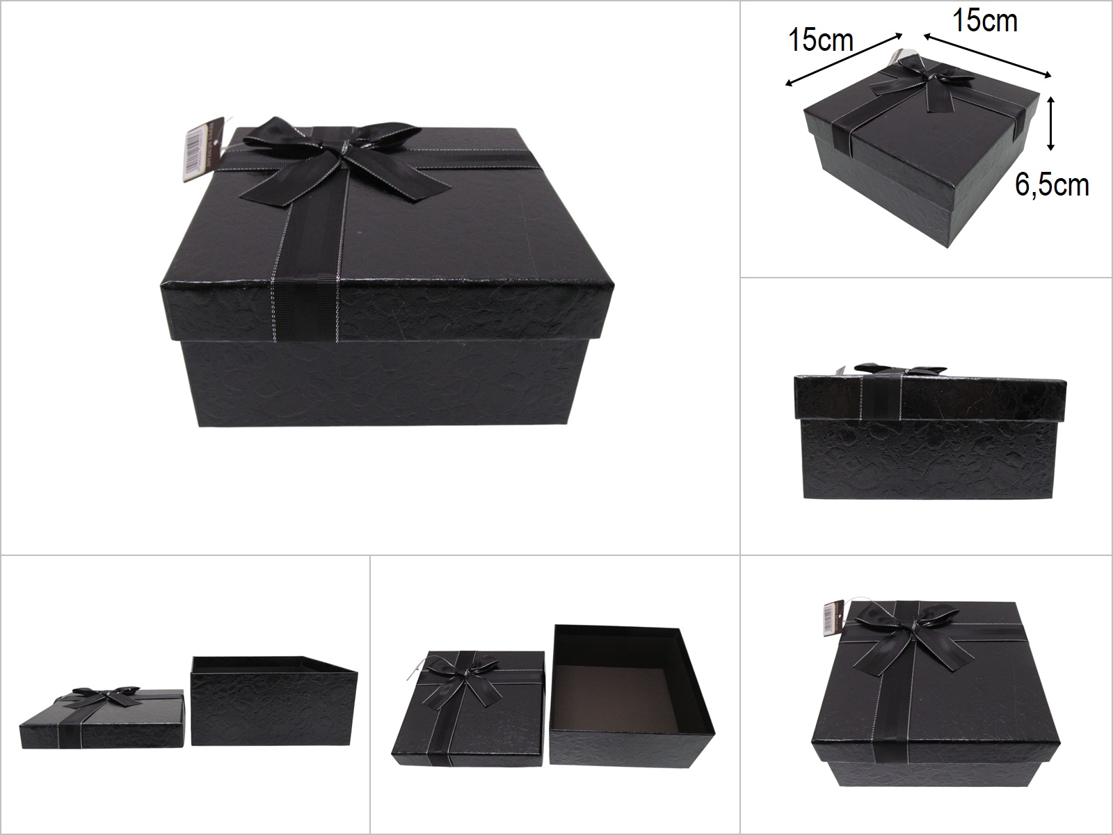 sd50021 siyah kare no1 kurdelalı parlak kabartma desenli hediye saklama kutusu