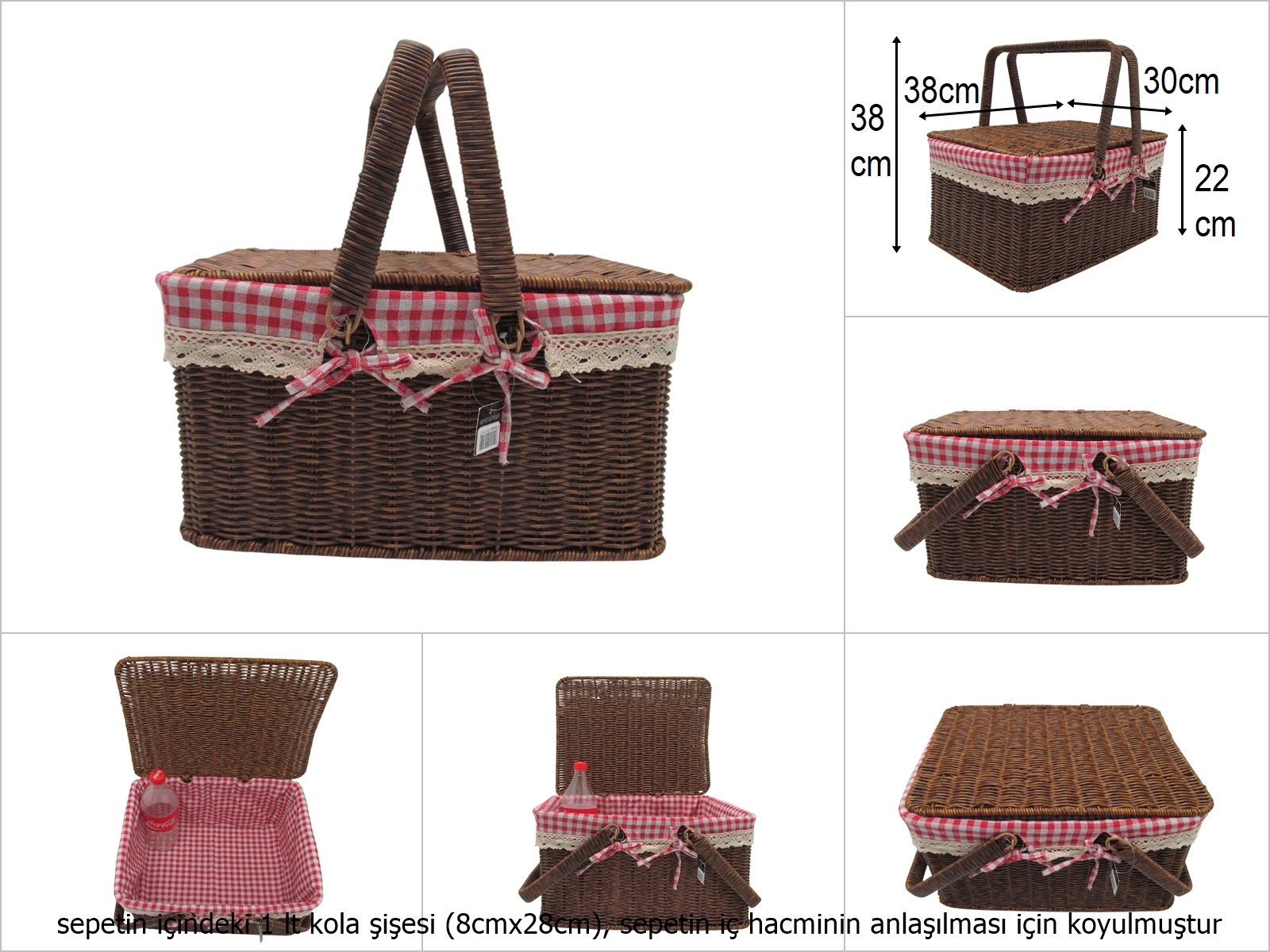 sd50227 METAL İSKELET ÜZERİNE PVC ÖRME NO2 PÖTİKARE KUMAŞLI SAPLARI KATLANAN DİKDÖRTGEN PİKNİK SEPETİ