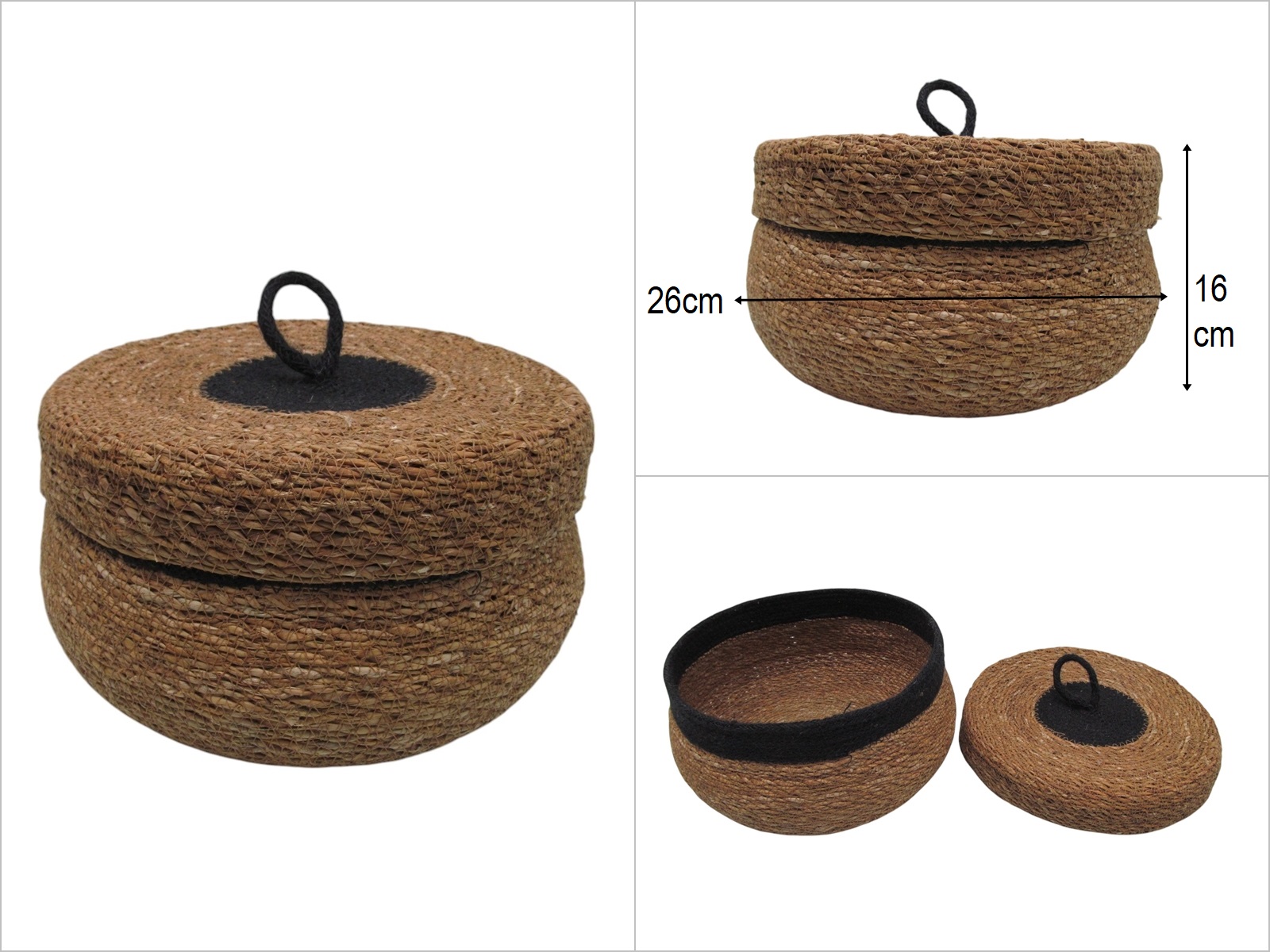 sd50234 siyah renk dekorlu no2 güveç model kapaklı hasır sepet