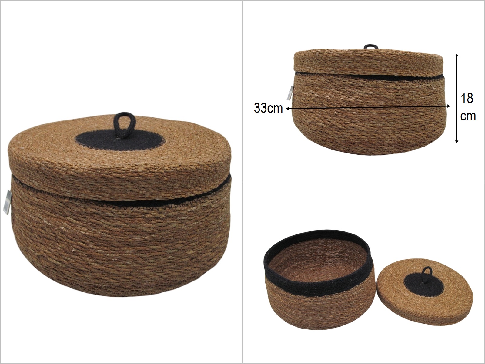 sd50235 siyah renk dekorlu no3 güveç model kapaklı hasır sepet