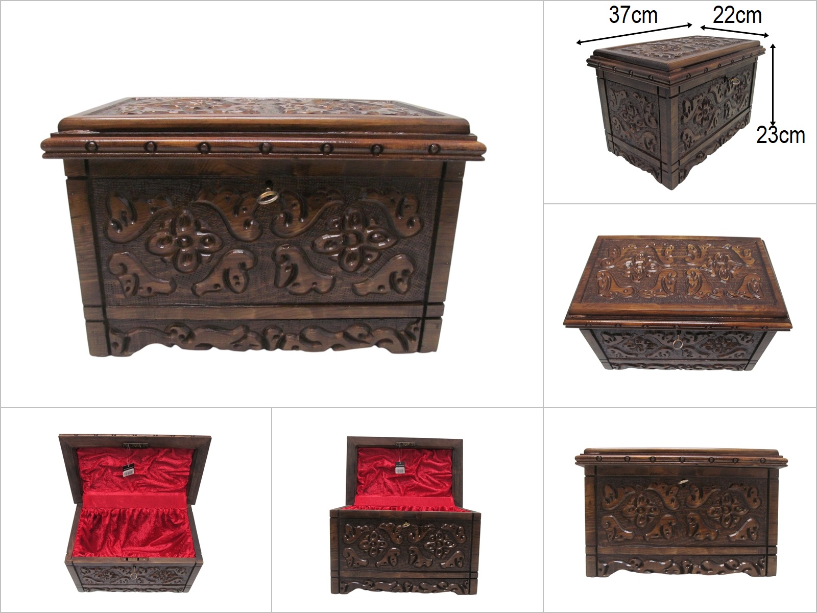 sd50746 dekoratif kilitli ceviz ağacı oyma sandık