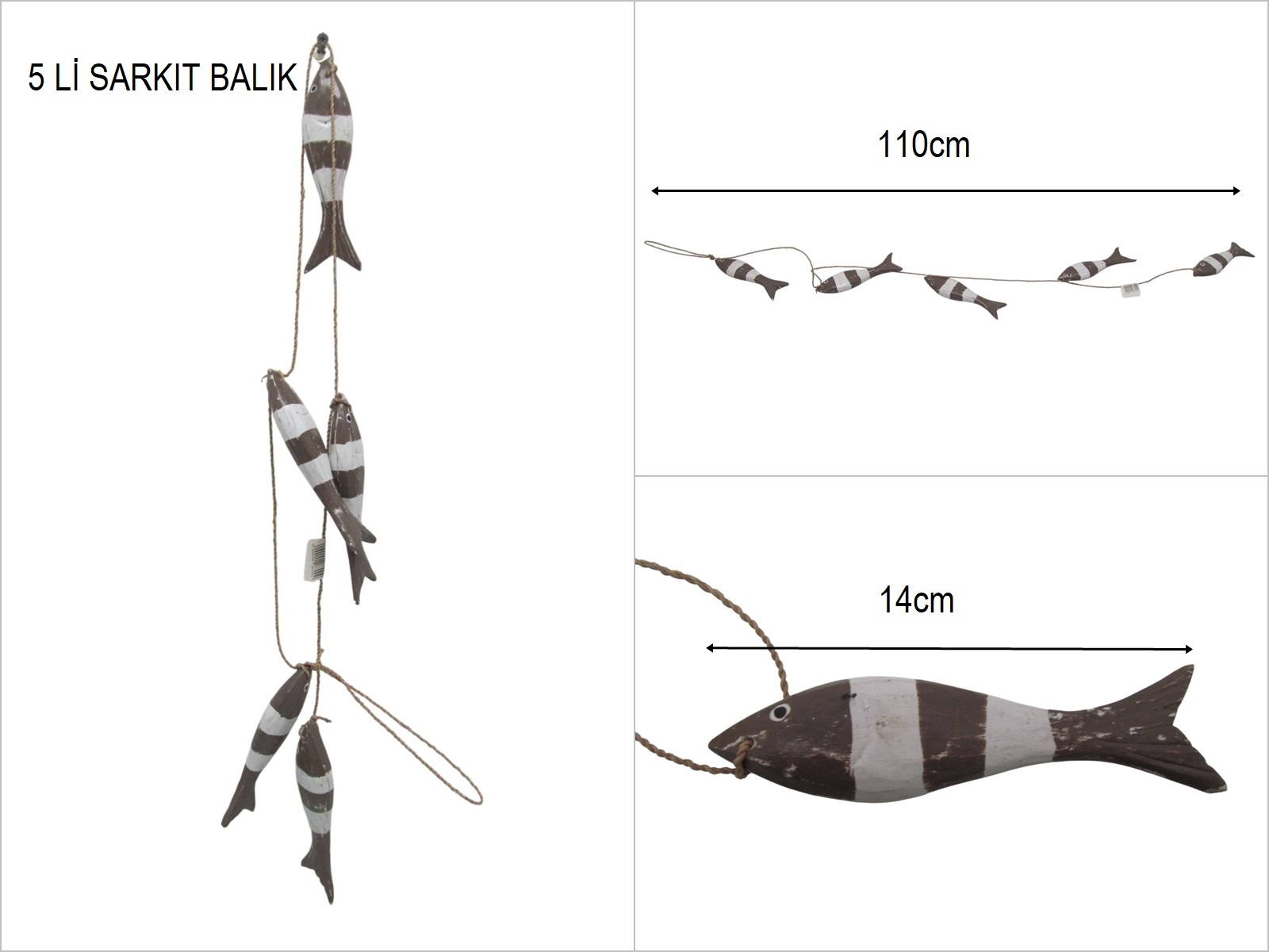 sd51199 ahşap 5 li sarkıt balık
