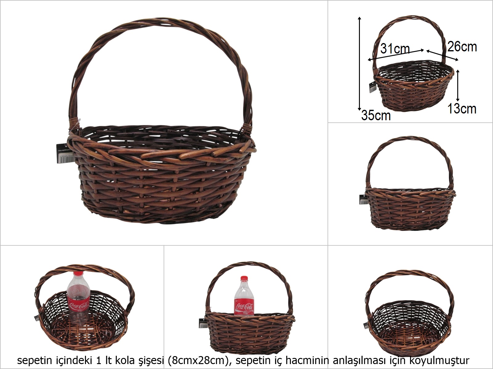 sd51300 no2 kahverengi oval üstten saplı hasır sepet