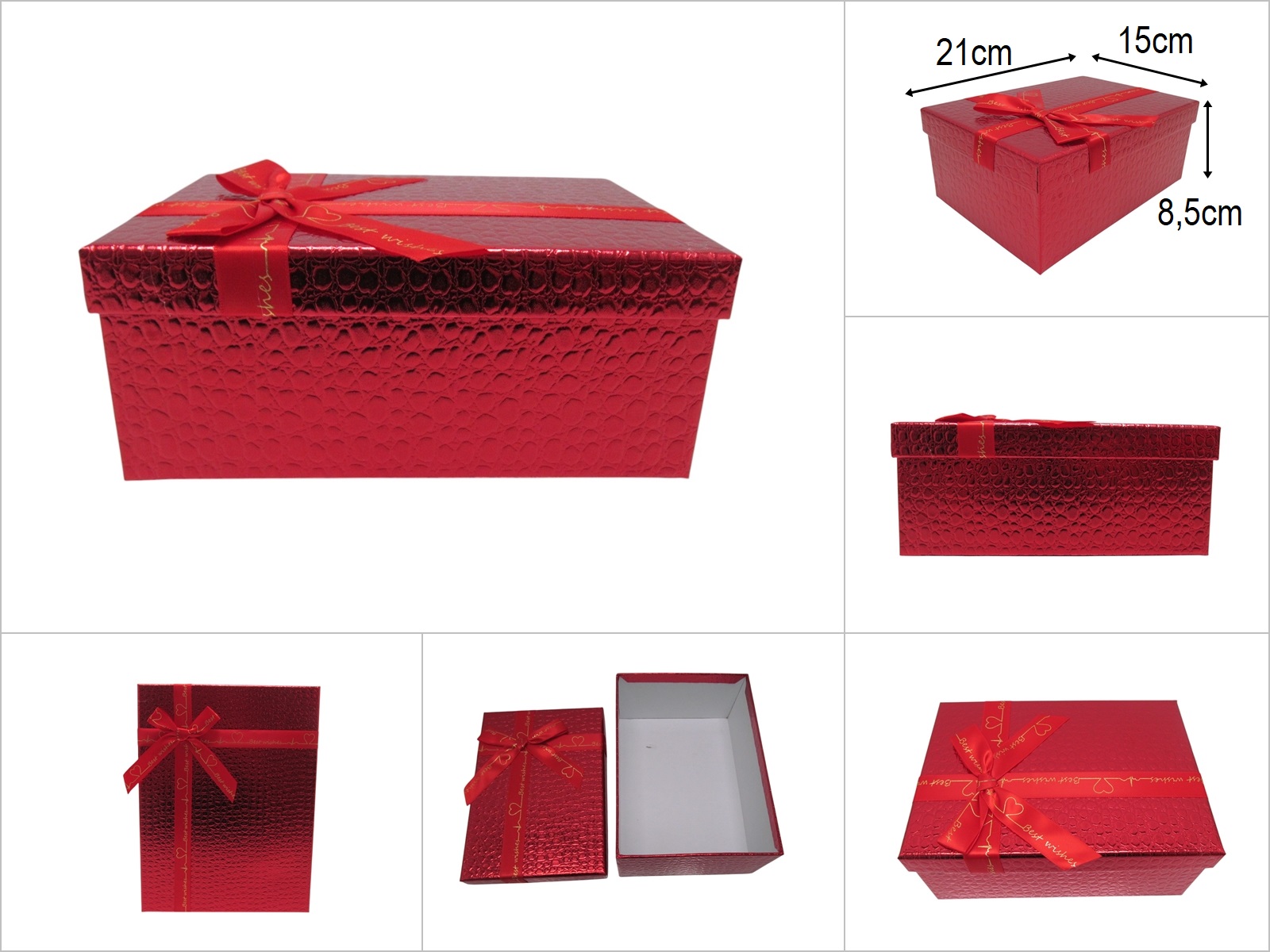 sd51397 kurdelalı no2 parlak kırmızı kabartma ciltli dikdörtgen hediye kutusu