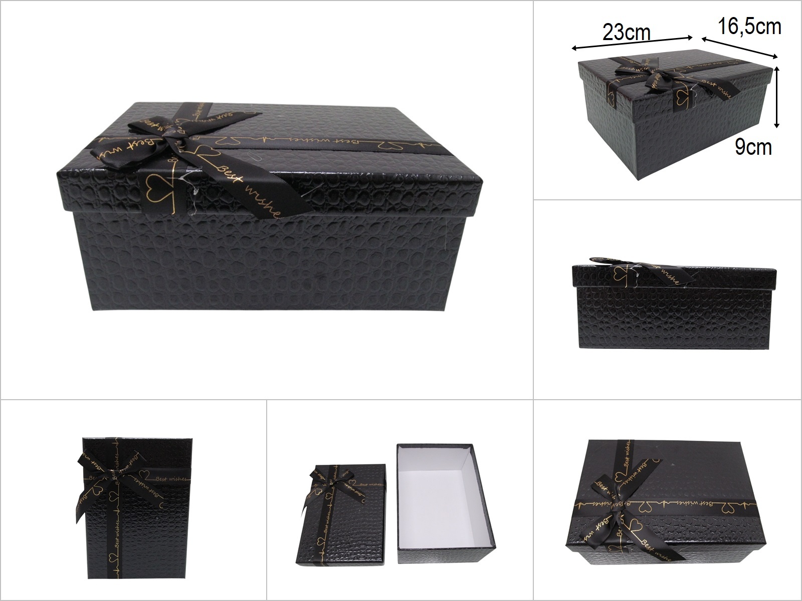 sd51408 kurdelalı no3 parlak siyah kabartma ciltli dikdörtgen hediye kutusu