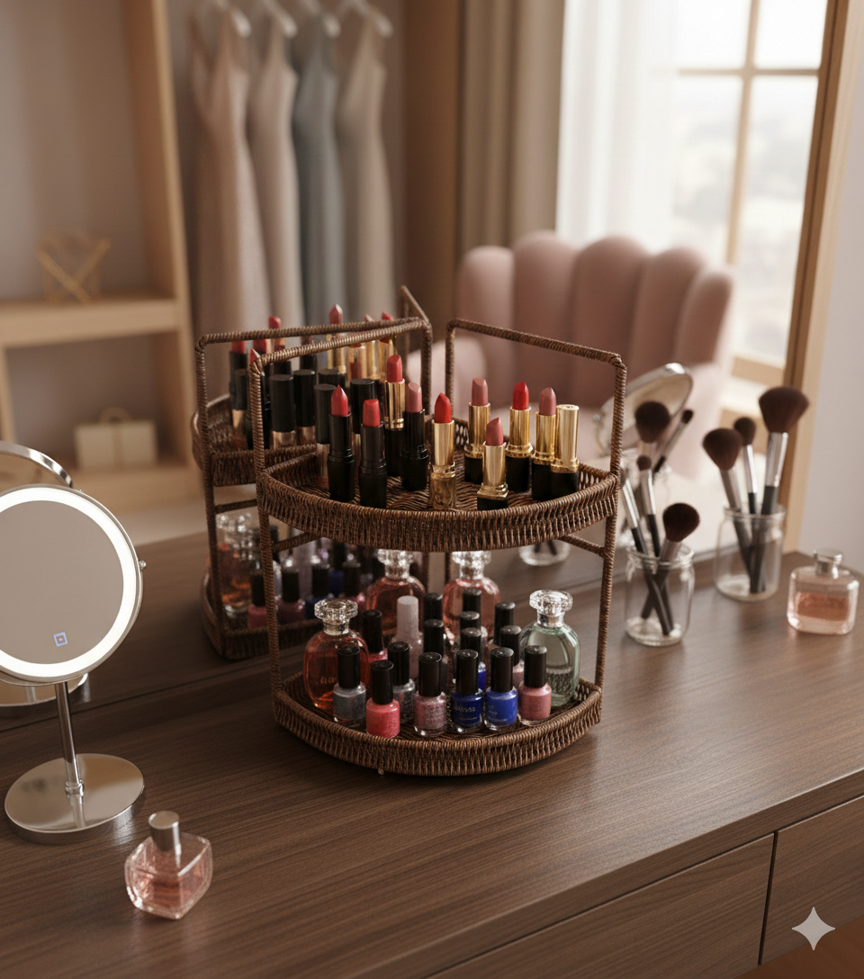 sd51964 metal iskelet üzerine pvc örülü 2 katlı tezgah üstü dekoratif köşe raf