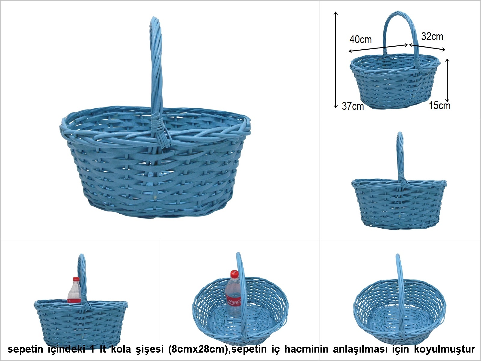 sd51986 üstten saplı no3 mavi boyalı söğüt sepet