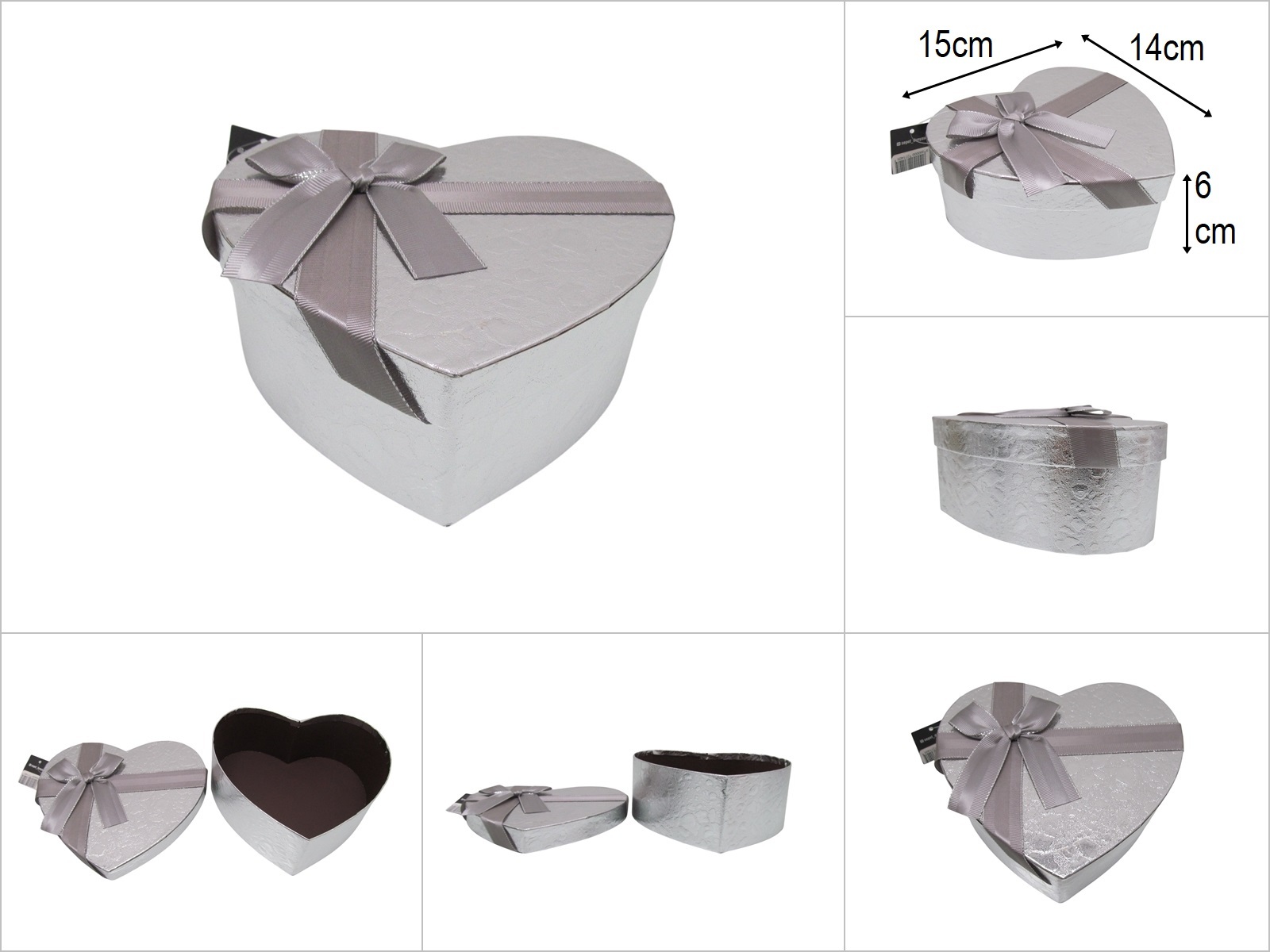 sd52046 gri kalp no1 kurdelalı parlak kabartma desenli hediye saklama kutusu