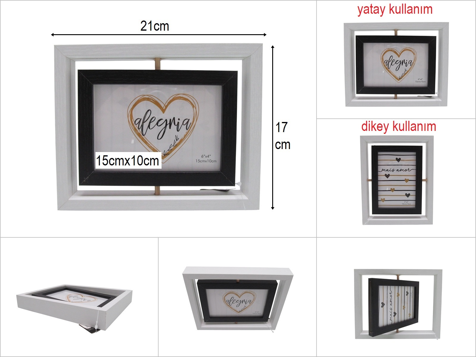 sd52050 beyaz çift taraflı,döner ahşap fotoğraf çerçevesi