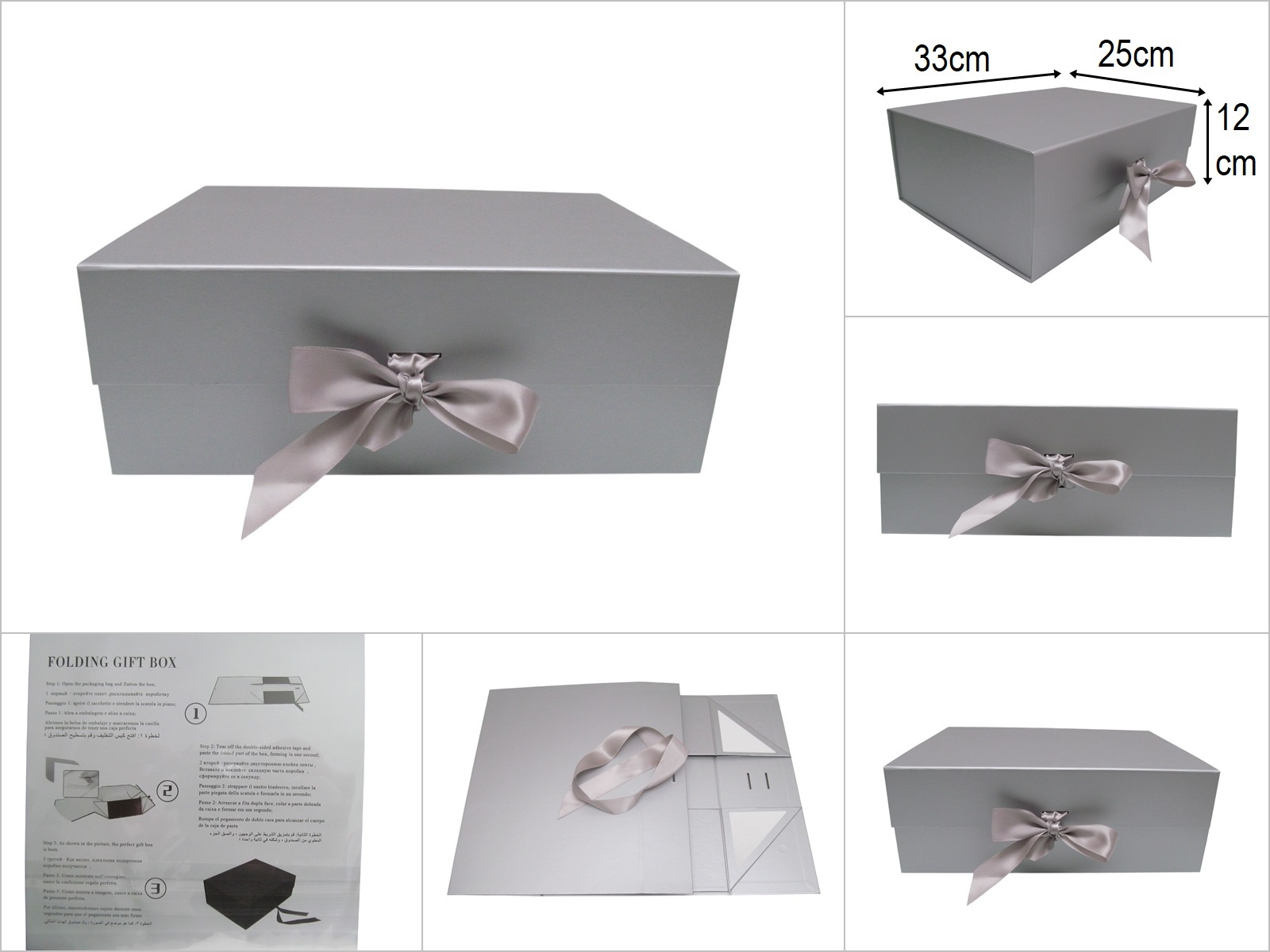 sd52300 dekoratif kurdelalı mıknatıslı kapaklı gri hediye saklama kutusu
