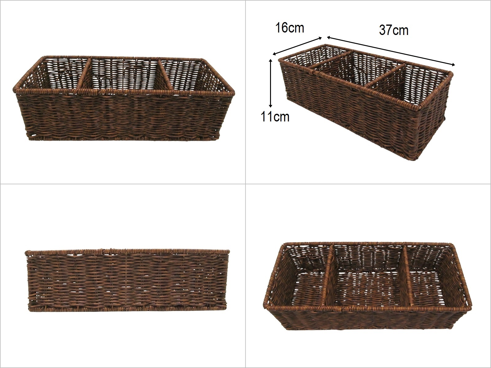 sd52372 metal iskelet üzerine kahverengi pvc örülü 3 bölmeli dikdörtgen sepet