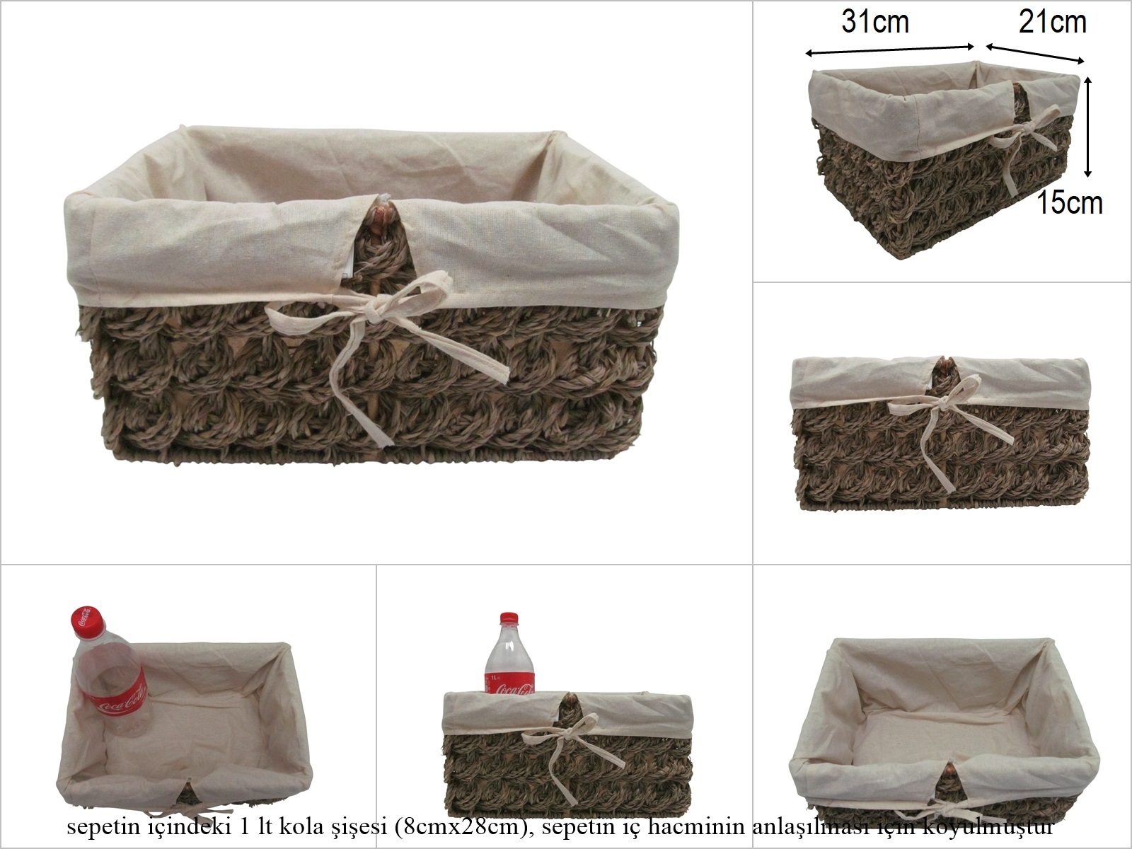 sd52404 dekoratif no1 metal iskelet üzerine hasır örülü kumaşlı dikdörtgen sepet