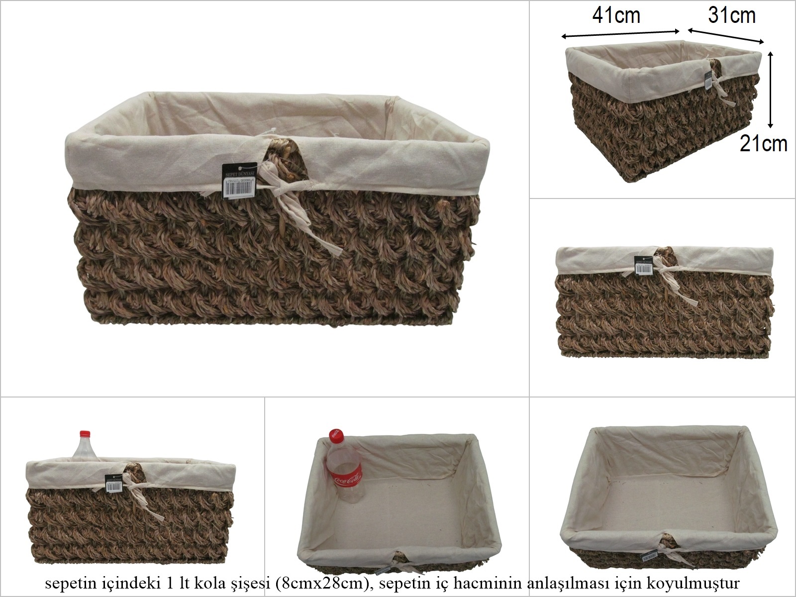 sd52406 dekoratif no3 metal iskelet üzerine hasır örülü kumaşlı dikdörtgen sepet