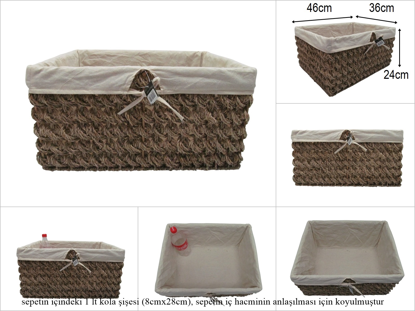 sd52407 dekoratif no4 metal iskelet üzerine hasır örülü kumaşlı dikdörtgen sepet