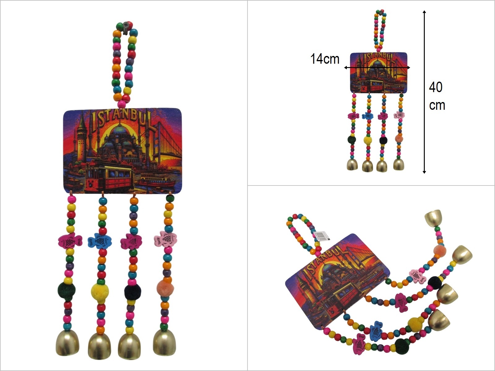 sd52547 istanbul dekorlu renkli ahşap boncuklu çıngıraklı duvar süsü