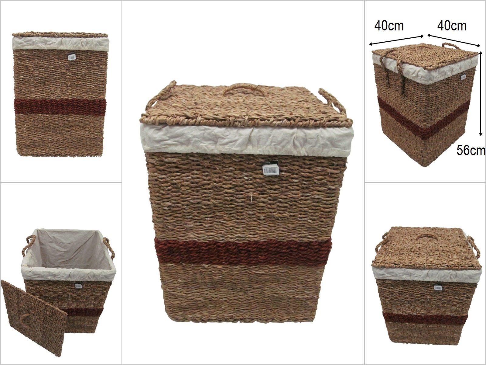 sd52623 kahve kuşak dekorlu no2 kapaklı kare hasır sepet
