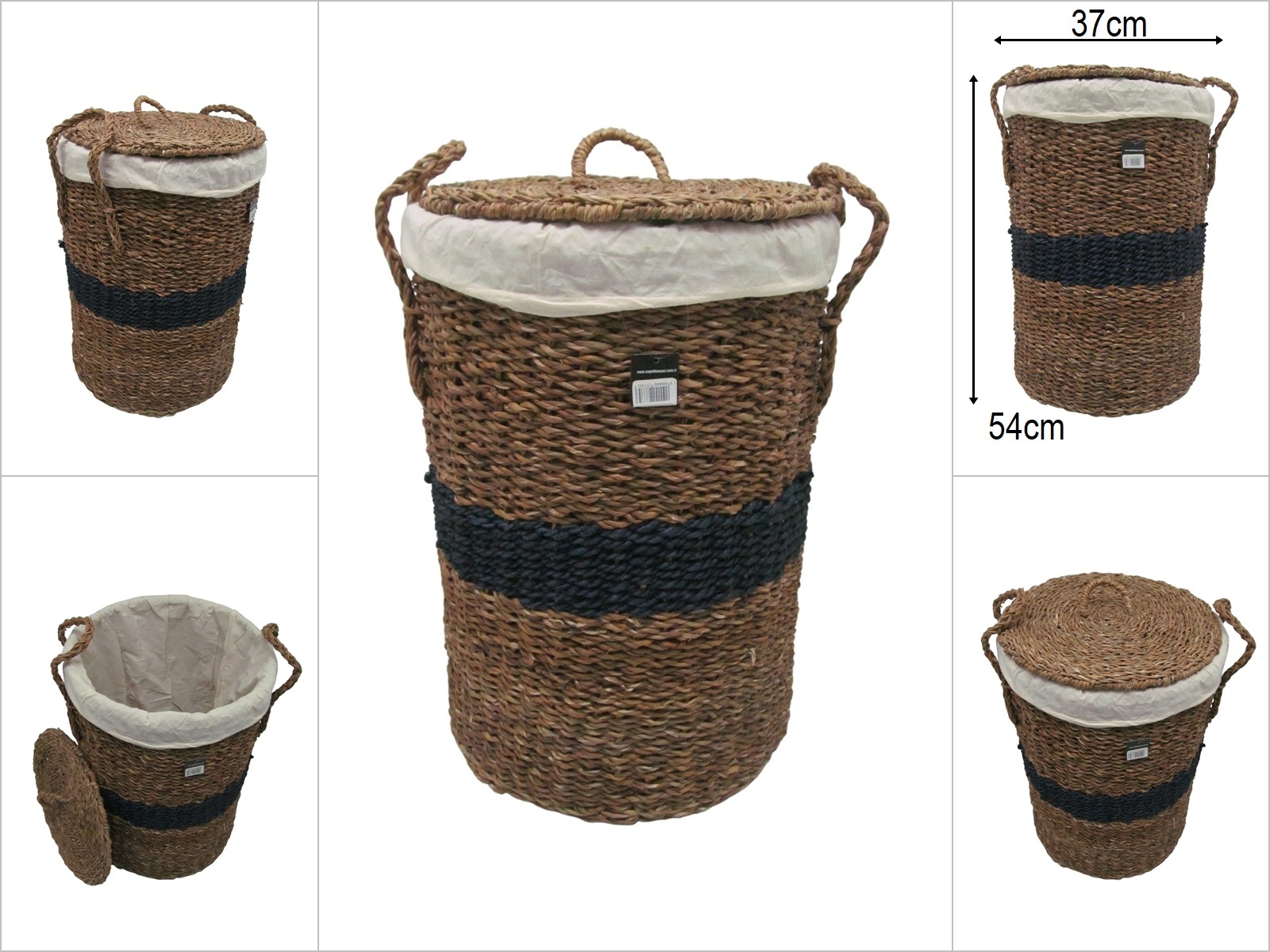 sd52630 lacivert kuşak dekorlu no1 kapaklı yuvarlak hasır sepet