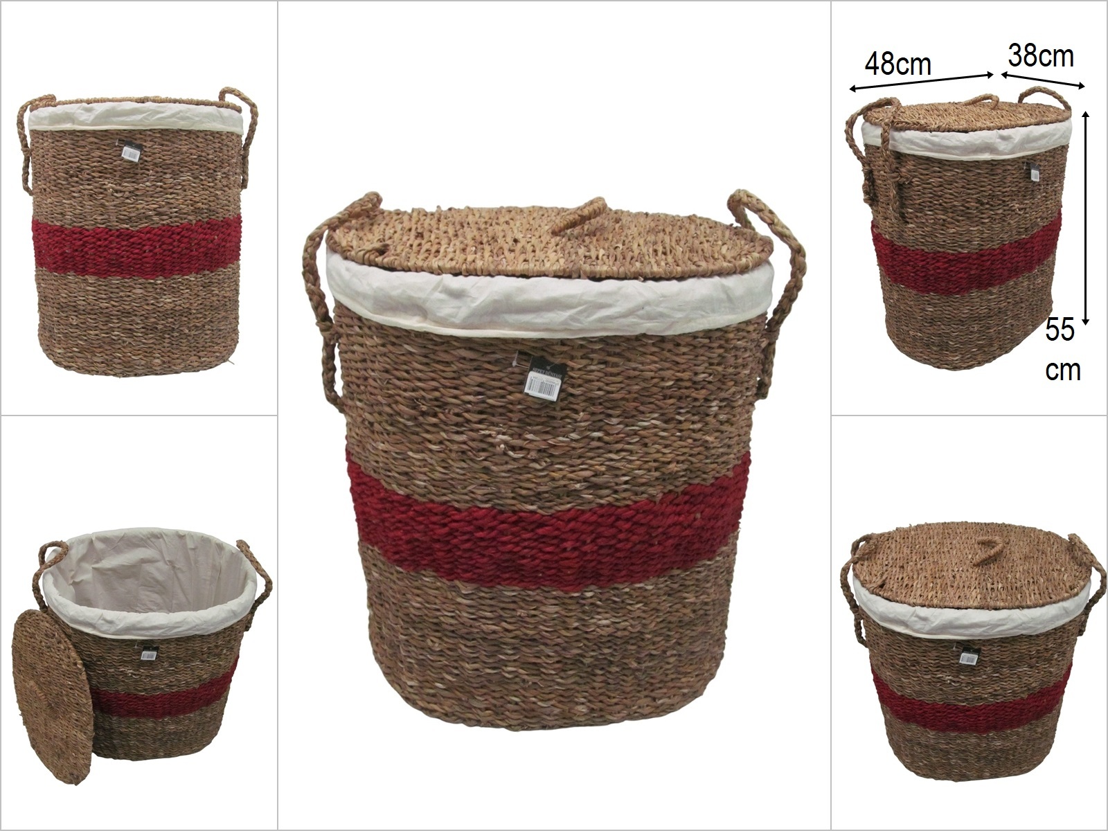 sd52633 kırmızı kuşak dekorlu no2 kapaklı oval hasır sepet