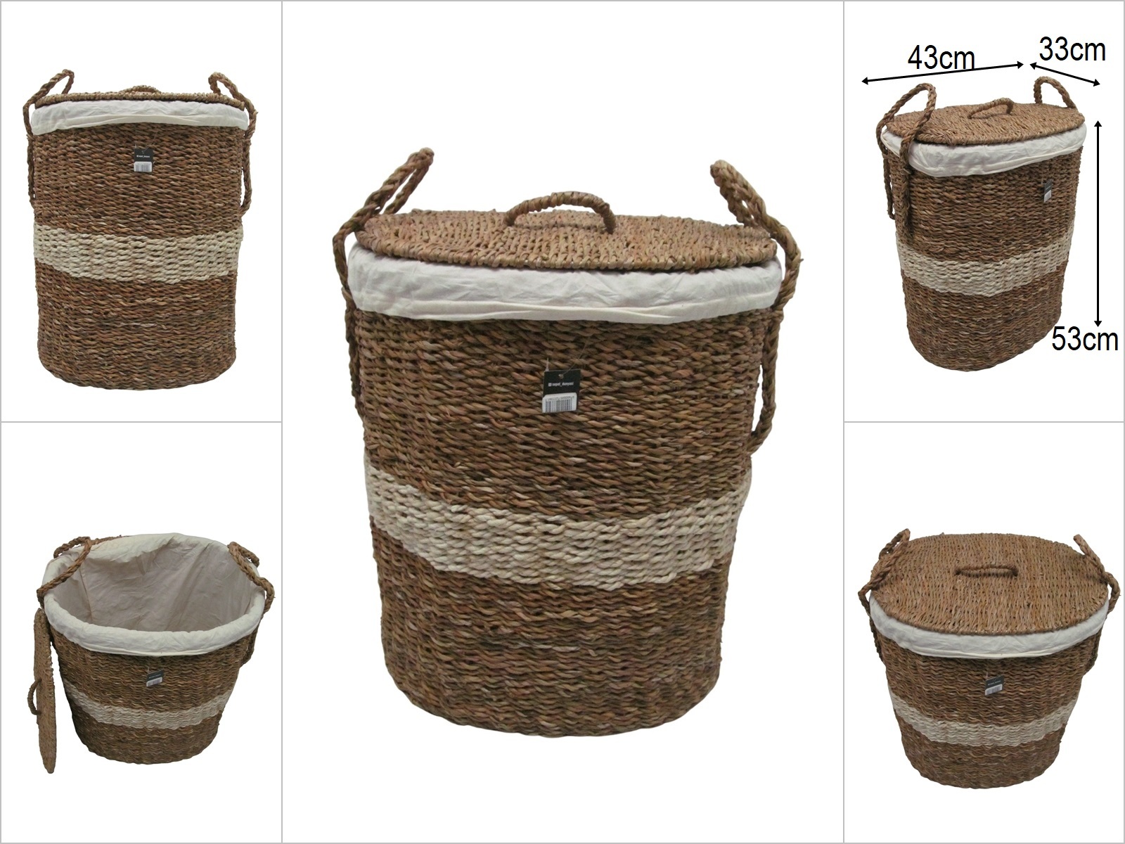 sd52634 krem kuşak dekorlu no1 kapaklı oval hasır sepet