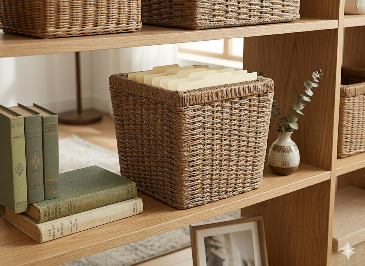 sd52727 ahşap iskelet üzerine sentetik ip örülü düzenleyici depolama sepeti