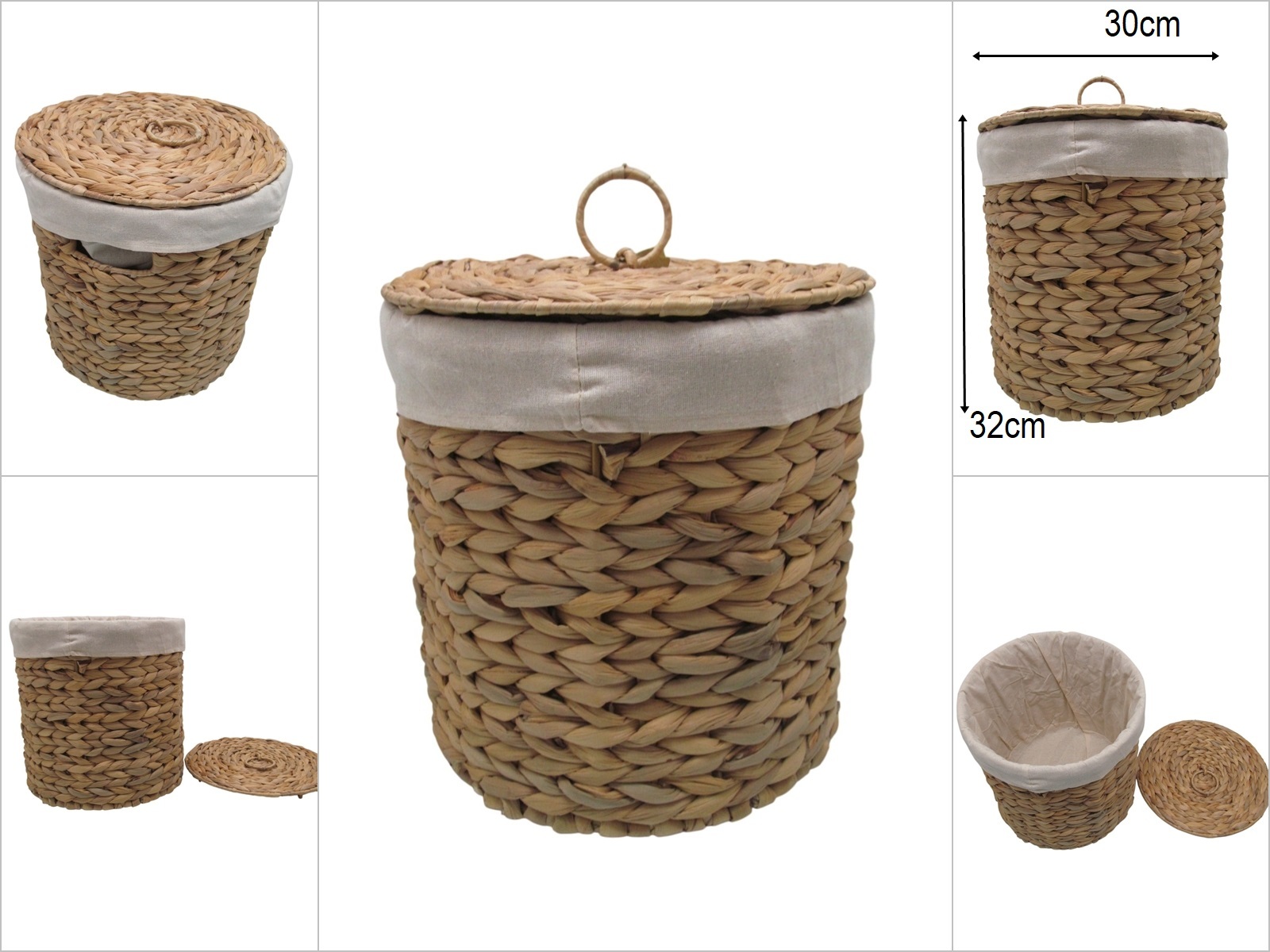 sd52766 dekoratif no3 kumaşlı kapaklı derin silindir hasır sepet