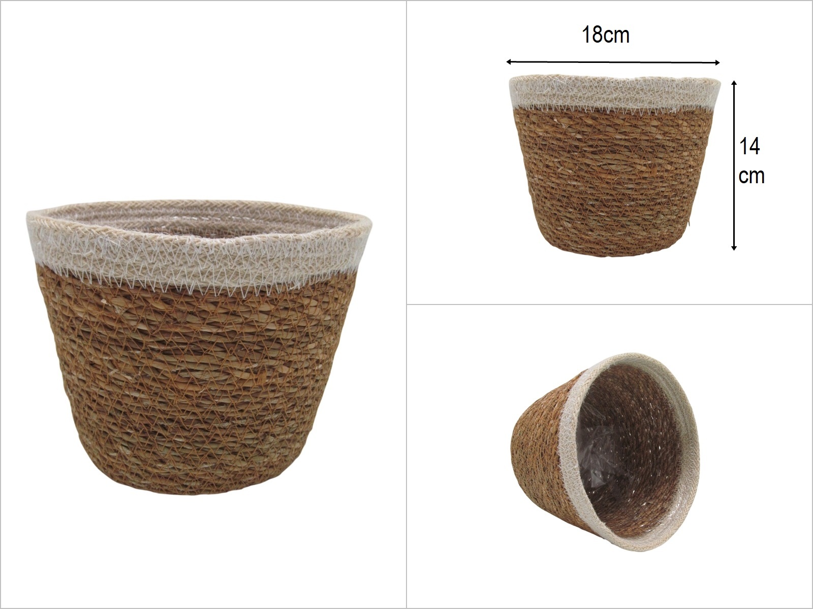 sd52940 dekoratif üstü krem pamuk ip dokuma yuvarlak derin hasır sepet