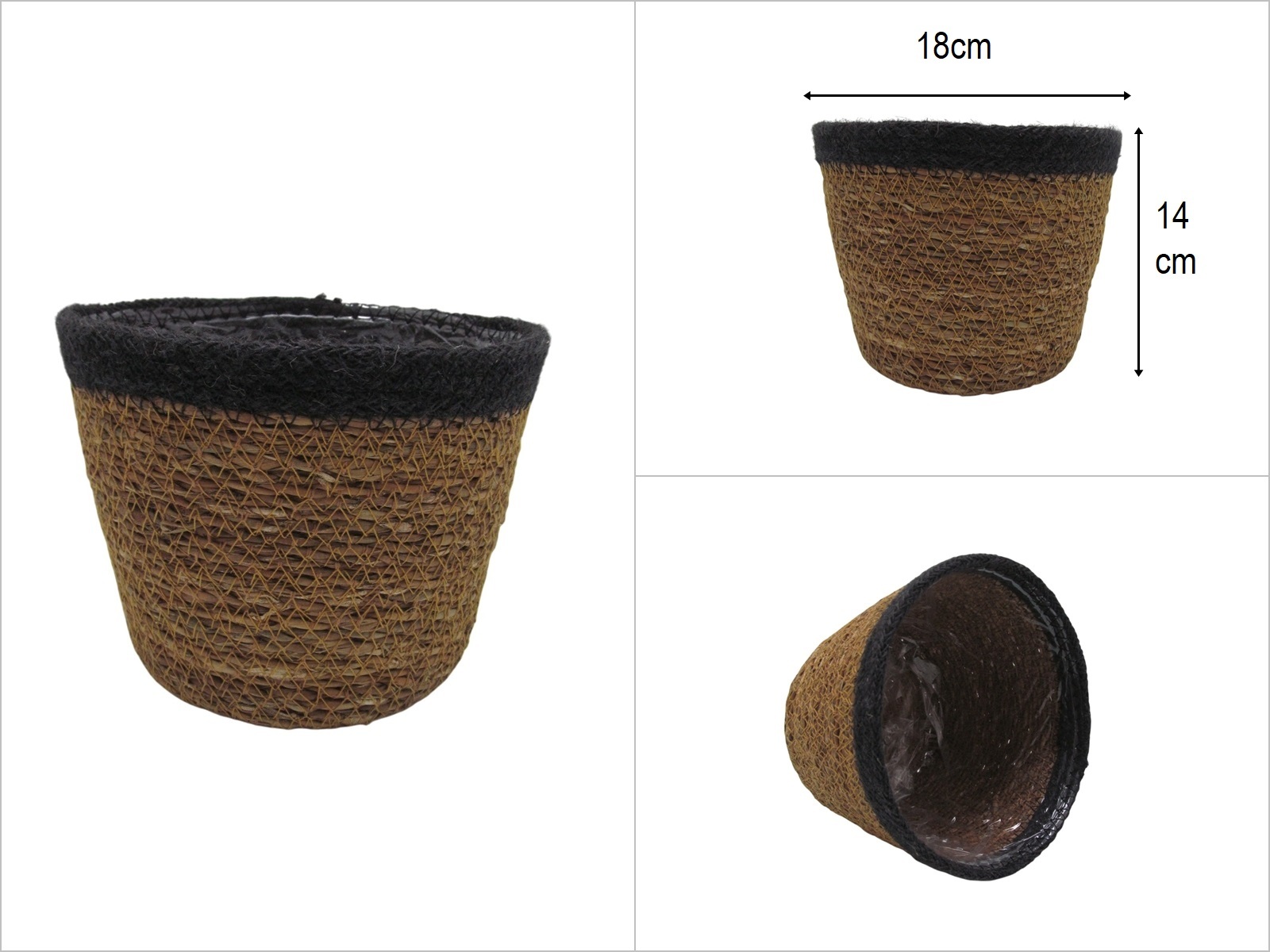 sd52941 dekoratif üstü siyah pamuk ip dokuma yuvarlak derin hasır sepet