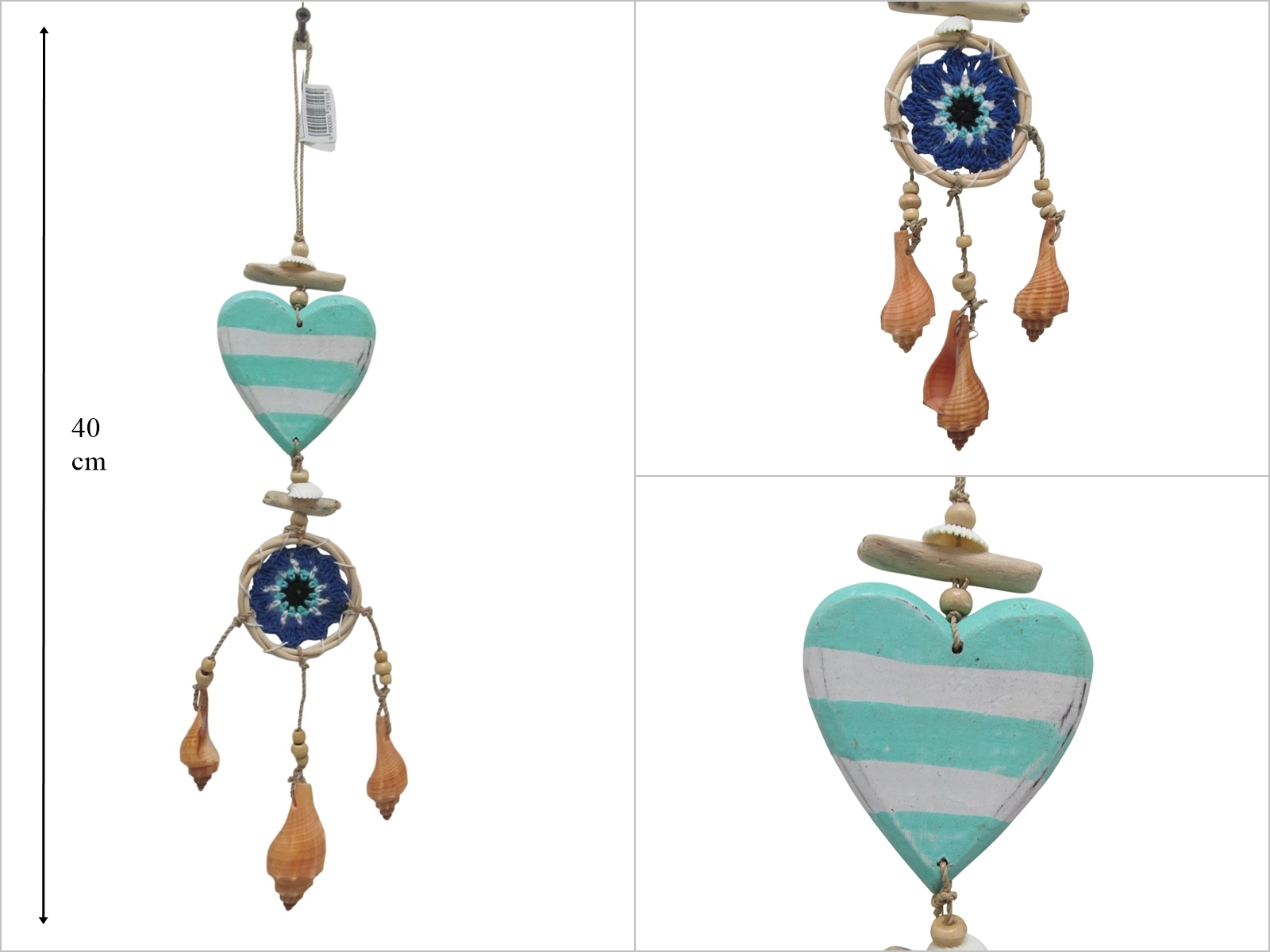 sd53044 deniz kabuklu ,ahşap kalp, makrome