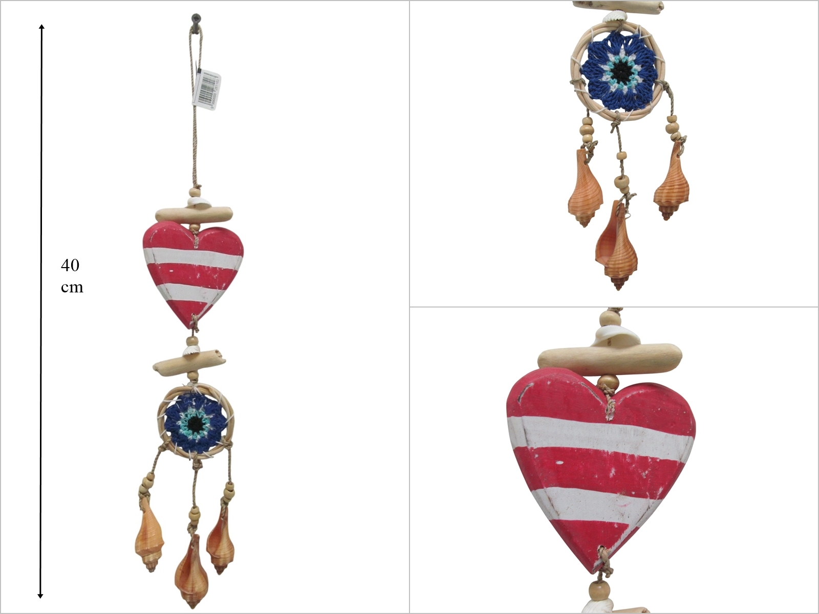 sd53046 deniz kabuklu ,ahşap kalp, makrome